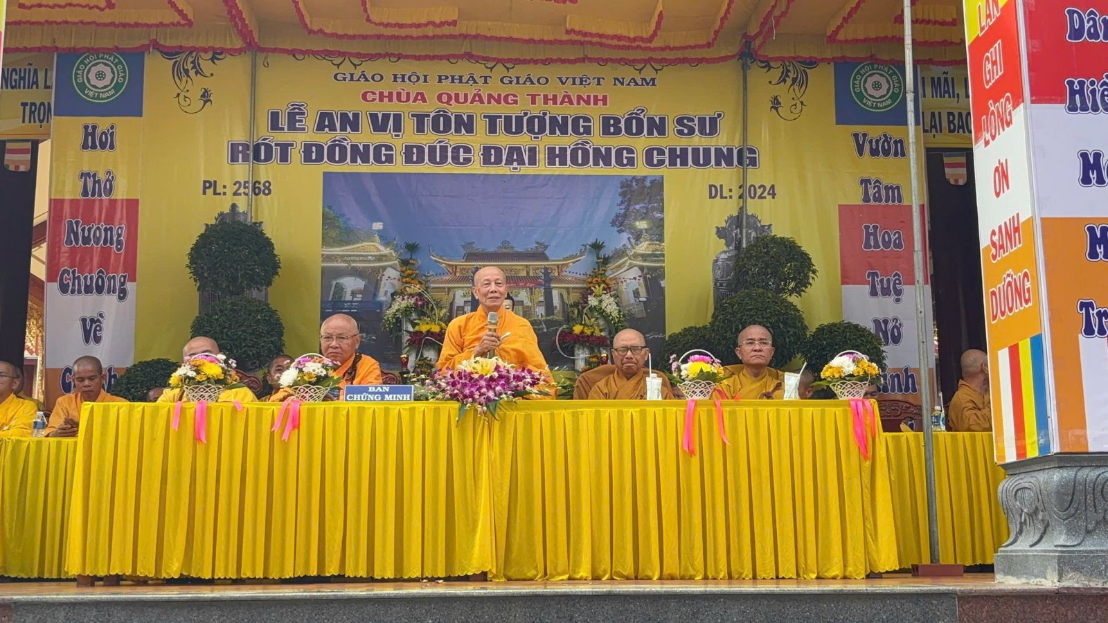 Chư Tôn đức cử hành nghi thức An vị Phật và rót Đại hồng chung
