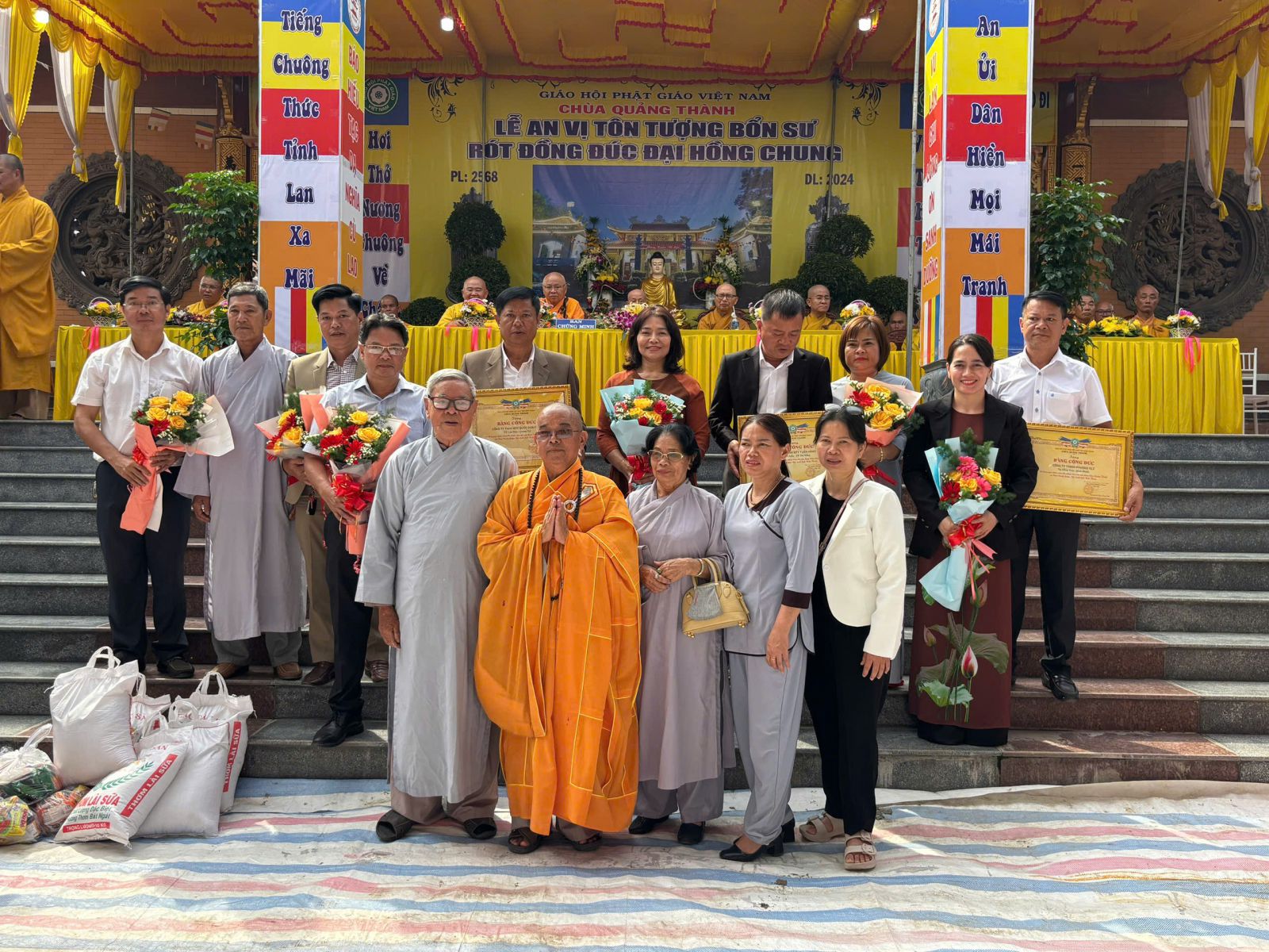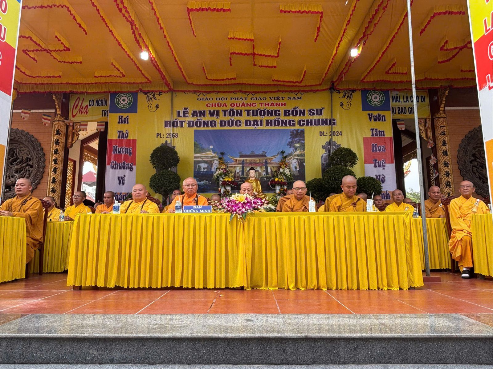 Quang lâm chứng minh có Hòa thượng Thích Minh Trí, Thành viên Hội đồng Chứng minh, Chứng minh Ban Trị sự Phật giáo Tỉnh; Hòa thượng Thích Như Thanh, Chứng minh Ban Trị sự Phật giáo tỉnh Đồng Nai; Thượng tọa Thích Quảng Hiền, Ủy viên HĐTS, Trưởng Ban Trị sự Phật giáo tỉnh Đắk Nông; Hòa Thượng Thích Minh Điền, Giáo thọ sư trường Trung Cấp Phật Học tỉnh Đồng Nai, Chứng minh Tổ đình Phước Viên, Thành Phố Biên Hòa; Thượng tọa Thích Quảng Cao, Trưởng Ban Từ Thiện Xã Hội PG Tỉnh, Trưởng Ban Trị sự Phật giáo huyện Hàm Thuận Bắc; Thượng tọa Thích Phước Nghĩa, Trưởng Ban Kiểm soát Phật giáo tỉnh, Trưởng Ban Trị sự Phật giáo huyện Đức Linh; Thượng tọa Thích Nhuận Chân, Phó Trưởng Ban Thường trực Phật giáo huyện Đức Linh; Chư Tôn Đức Tăng Ni Thành viên Ban Trị sự Phật giáo tỉnh, Ban Trị Sự Phật giáo các huyện thị, chư Tăng Tông môn Tổ đình Phước Viên, Chư Tôn đức Trú Trì Các Tự viện trong và ngoài Huyện Đức Linh đồng tham dự.