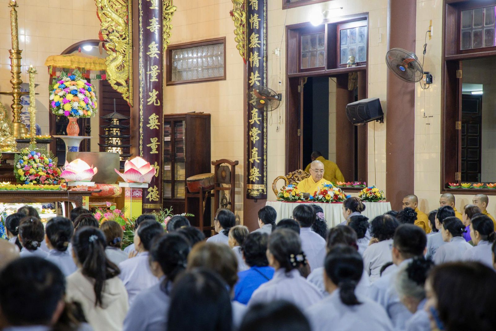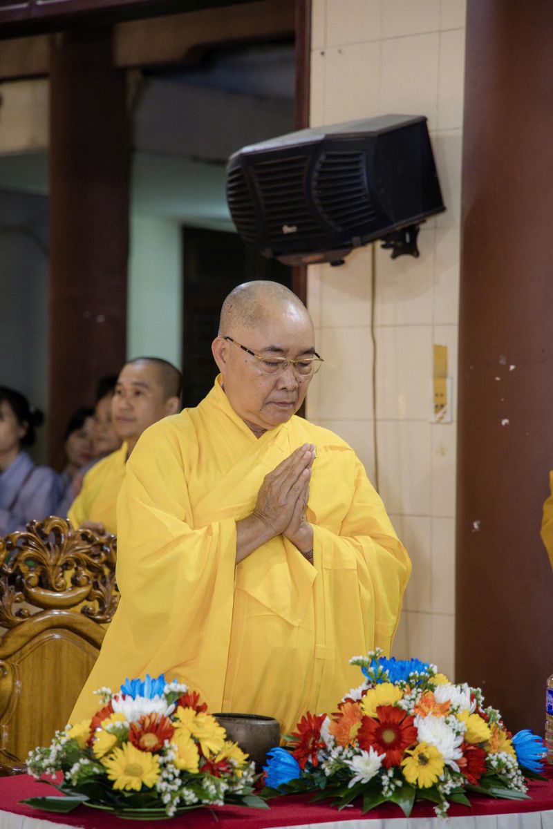Tại đạo tràng, Hòa thượng Thích Minh Nhật đã ban thời pháp khai thị đầy từ hòa và sâu sắc về ý nghĩa của Đức Phật A Di Đà cũng như nghi lễ Hoa Đăng. Hòa thượng nhấn mạnh: